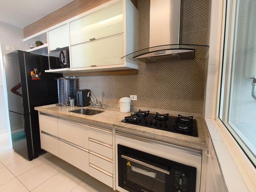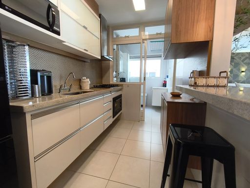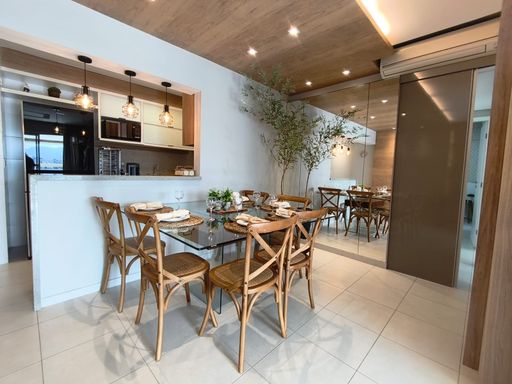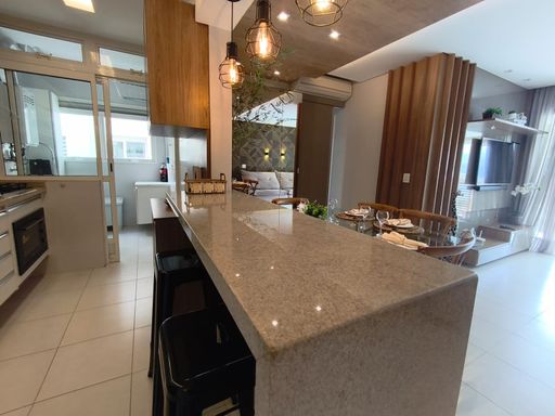 Com acabamento de alto padrão e sofisticação em cada detalhe, o imóvel oferece uma ampla sala com dois ambientes, estar e jantar, integrados de forma elegante e com excelente iluminação natural. A cozinha americana, moderna e funcional, integrando ainda mais os ambientes e valorizando a experiência com a vista.