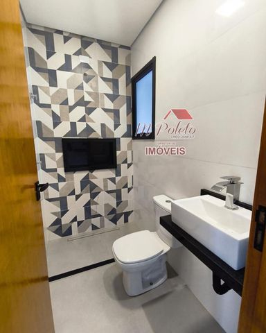Belíssimo sobrado novo, com excelente padrão de construção e localização privilegiada. O imóvel dispõe de duas suítes amplas, sala para dois ambientes, lavabo, cozinha, área de serviço e quintal.